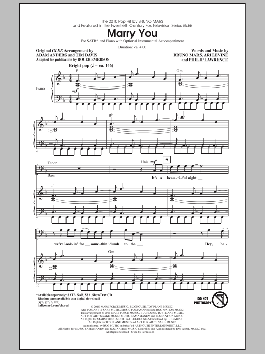 Download or print Roger Emerson Marry You sheet music, chords and digital score arranged for SSA Choir. This Film/TV score includes 19 page(s).