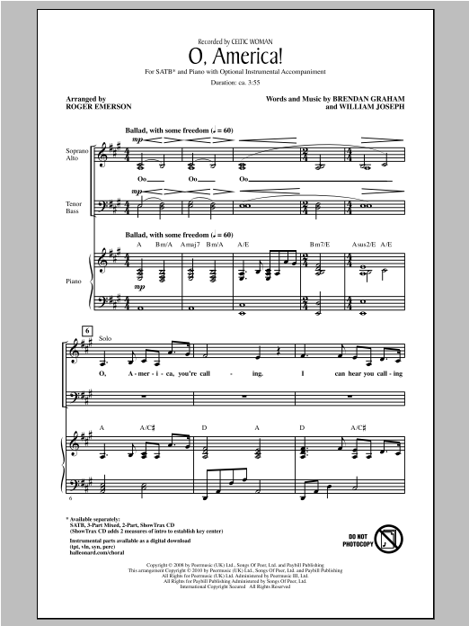 Download or print Roger Emerson O, America! sheet music, chords and digital score arranged for 2-Part Choir. This Patriotic score includes 9 page(s).