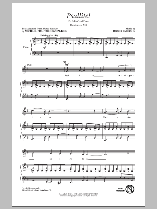 Download or print Roger Emerson Psallite! sheet music, chords and digital score arranged for 3-Part Mixed Choir. This Latin score includes 14 page(s).