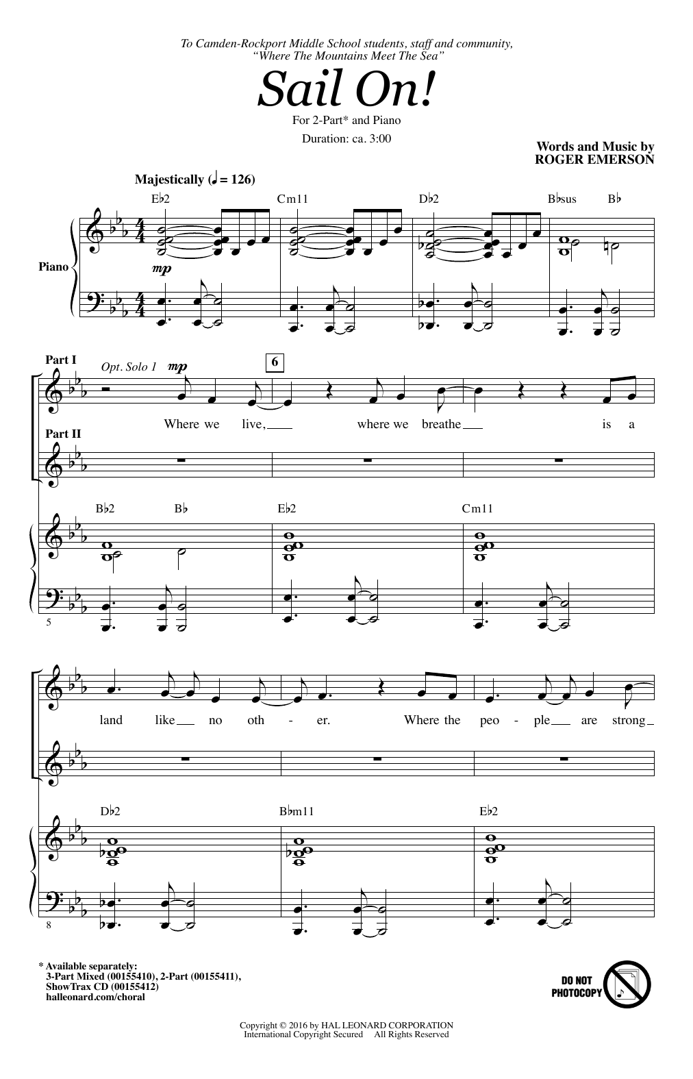 Download or print Roger Emerson Sail On! sheet music, chords and digital score arranged for 3-Part Mixed Choir. This Inspirational score includes 14 page(s).