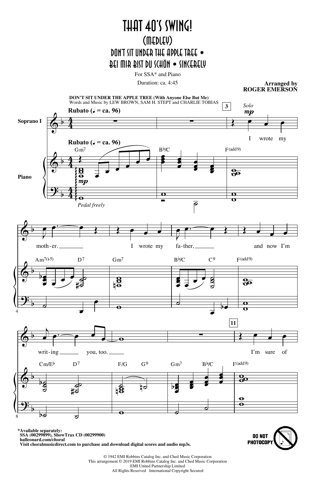 Download or print Roger Emerson That 40's Swing! (Medley) sheet music, chords and digital score arranged for SSA Choir. This Standards score includes 23 page(s).