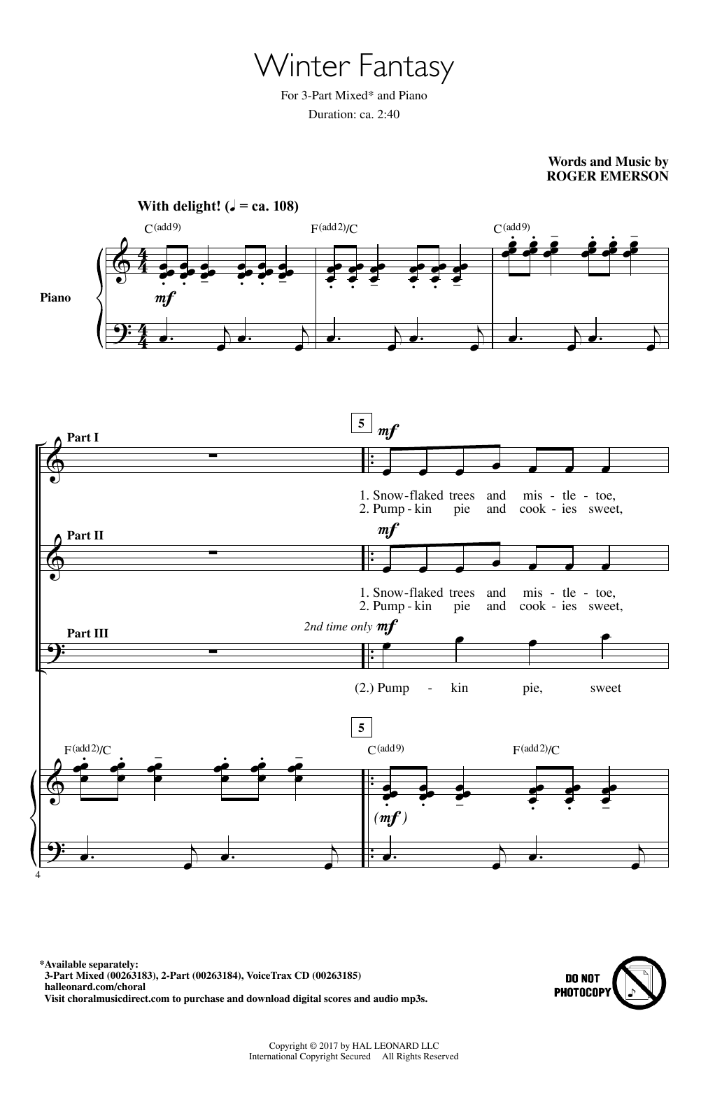 Download or print Roger Emerson Winter Fantasy sheet music, chords and digital score arranged for 3-Part Mixed Choir. This Christmas score includes 10 page(s).