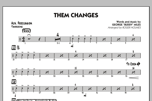 Download or print Roger Holmes Them Changes - Aux Percussion sheet music, chords and digital score arranged for Jazz Ensemble. This Jazz score includes 2 page(s).