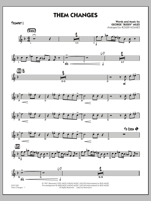 Download or print Roger Holmes Them Changes - Trumpet 1 sheet music, chords and digital score arranged for Jazz Ensemble. This Jazz score includes 2 page(s).
