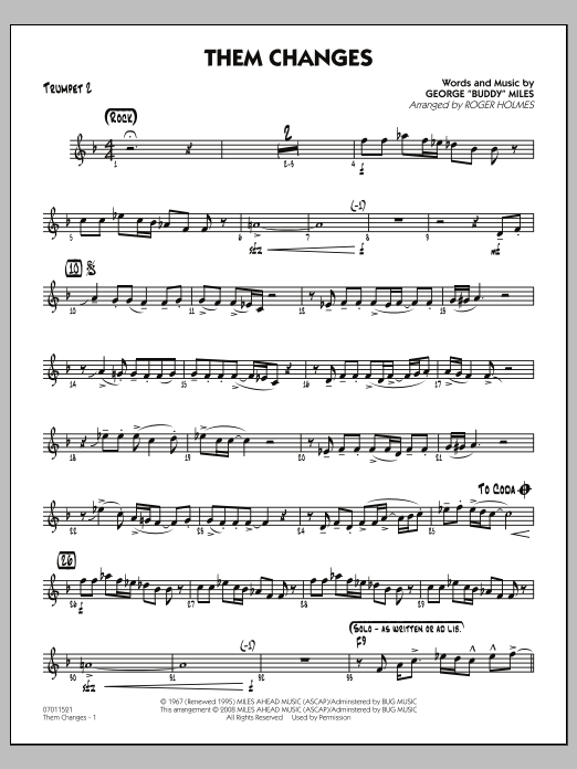 Download or print Roger Holmes Them Changes - Trumpet 2 sheet music, chords and digital score arranged for Jazz Ensemble. This Jazz score includes 2 page(s).
