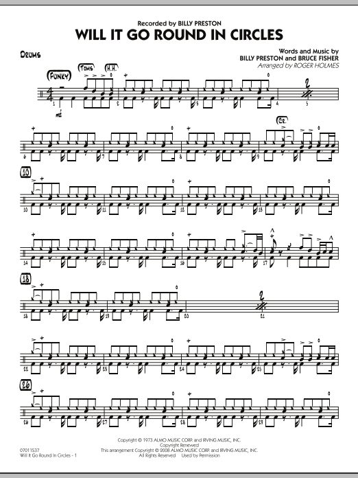 Download or print Roger Holmes Will It Go Round in Circles? - Drums sheet music, chords and digital score arranged for Jazz Ensemble. This Jazz score includes 2 page(s).