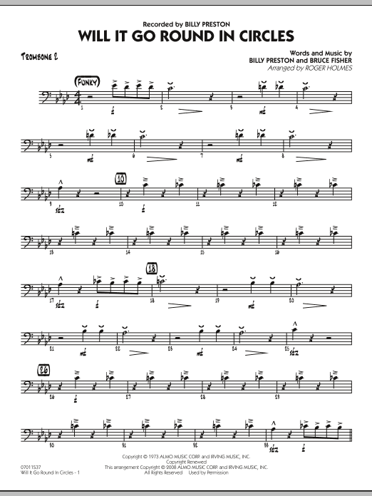 Download or print Roger Holmes Will It Go Round in Circles? - Trombone 2 sheet music, chords and digital score arranged for Jazz Ensemble. This Jazz score includes 2 page(s).