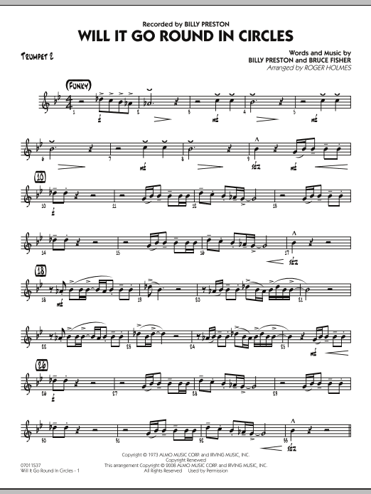 Download or print Roger Holmes Will It Go Round in Circles? - Trumpet 2 sheet music, chords and digital score arranged for Jazz Ensemble. This Jazz score includes 2 page(s).