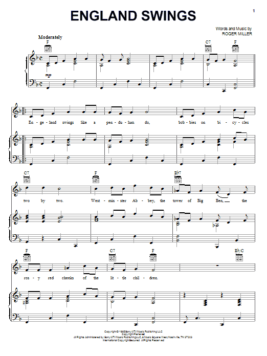 Download or print Roger Miller England Swings sheet music, chords and digital score arranged for Lead Sheet / Fake Book. This Country score includes 1 page(s).