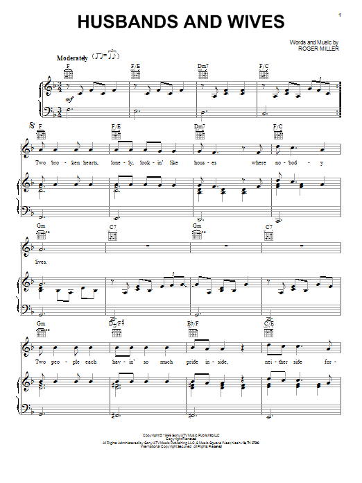 Download or print Roger Miller Husbands And Wives sheet music, chords and digital score arranged for Easy Guitar Tab. This Country score includes 2 page(s).