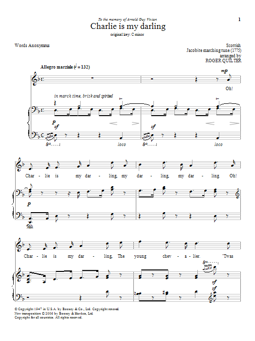 Download or print Roger Quilter Charlie Is My Darling sheet music, chords and digital score arranged for Piano & Vocal. This Classical score includes 5 page(s).