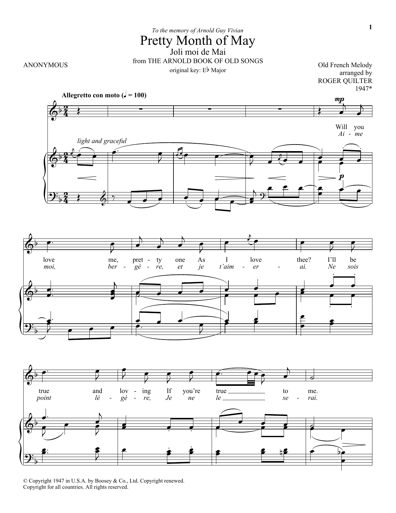 Download or print Roger Quilter Pretty Month Of May (Joli Moi De Mai) sheet music, chords and digital score arranged for Piano & Vocal. This Classical score includes 3 page(s).