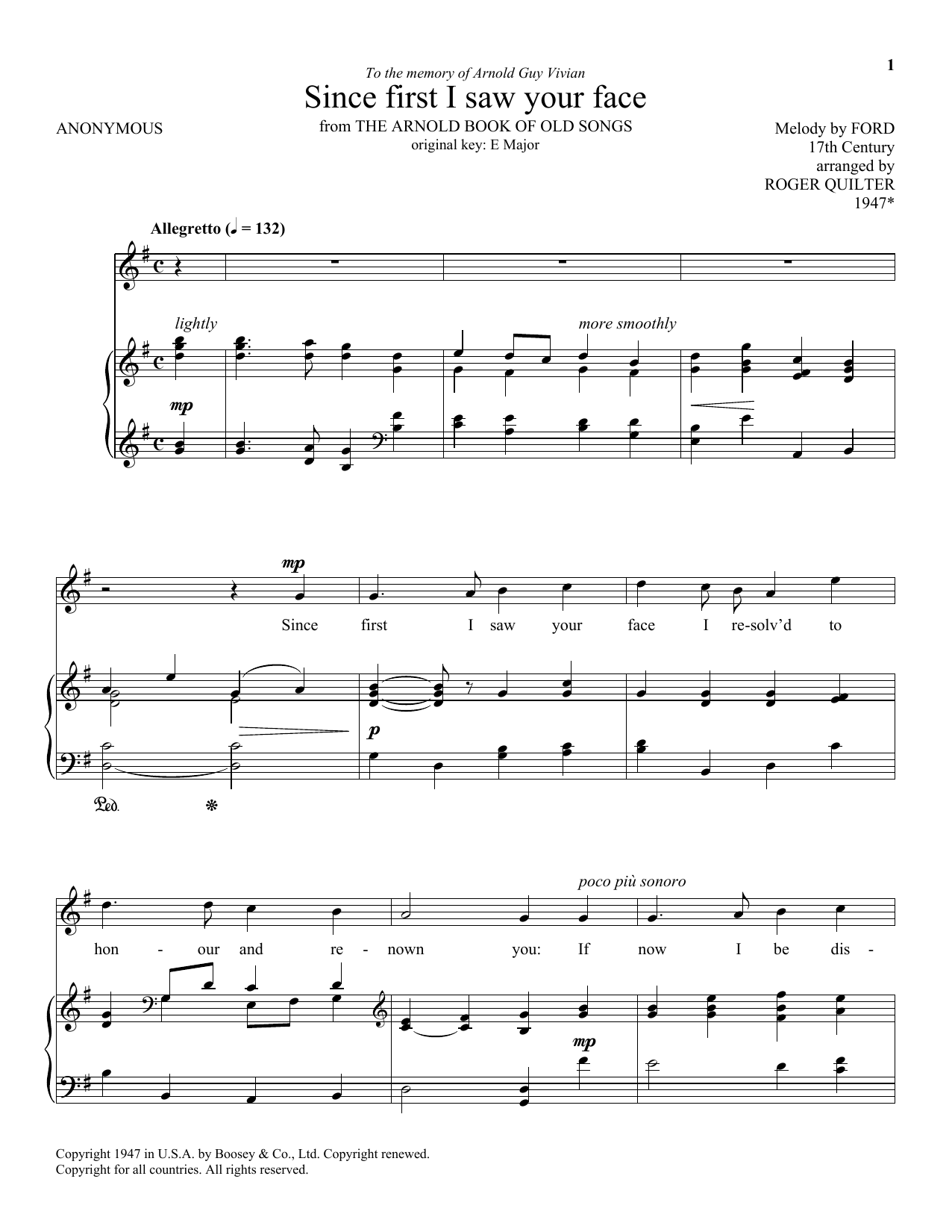 Download or print Roger Quilter Since First I Saw Your Face sheet music, chords and digital score arranged for Piano & Vocal. This Classical score includes 4 page(s).