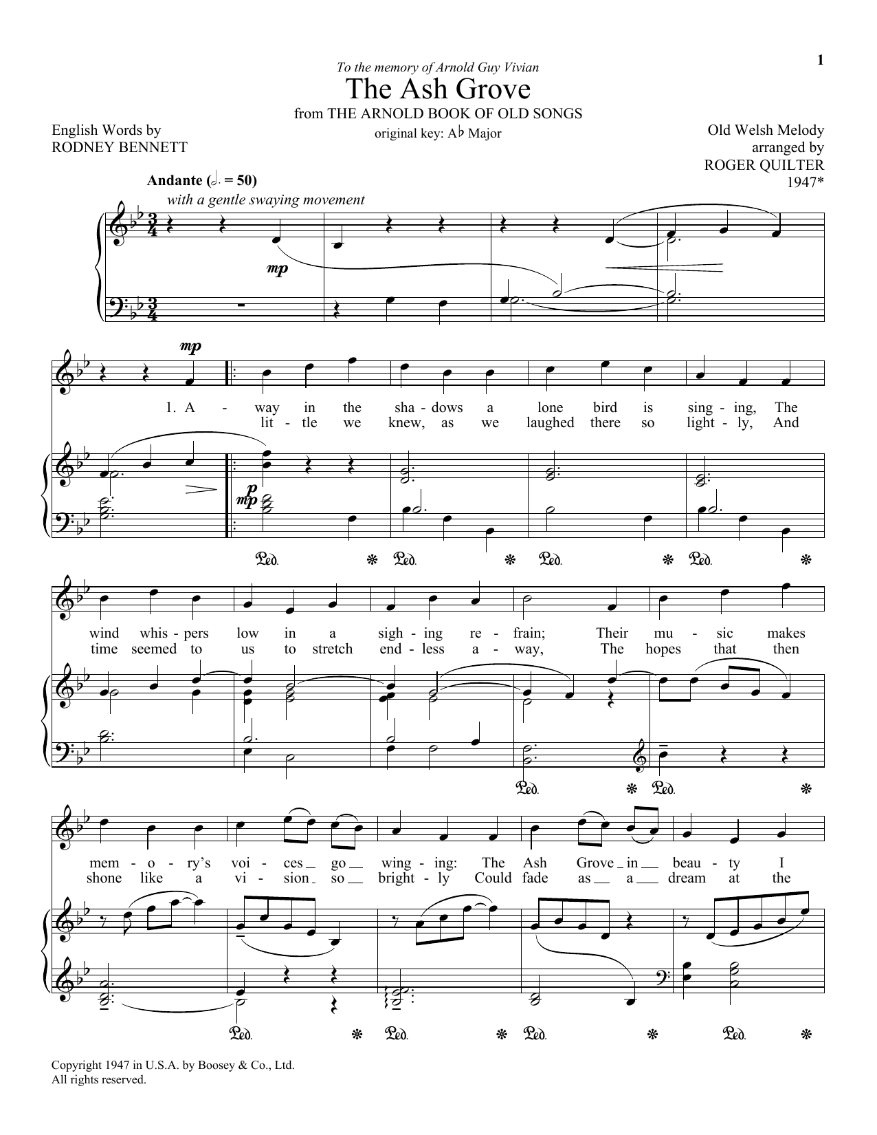 Download or print Roger Quilter The Ash Grove sheet music, chords and digital score arranged for Piano & Vocal. This Classical score includes 2 page(s).