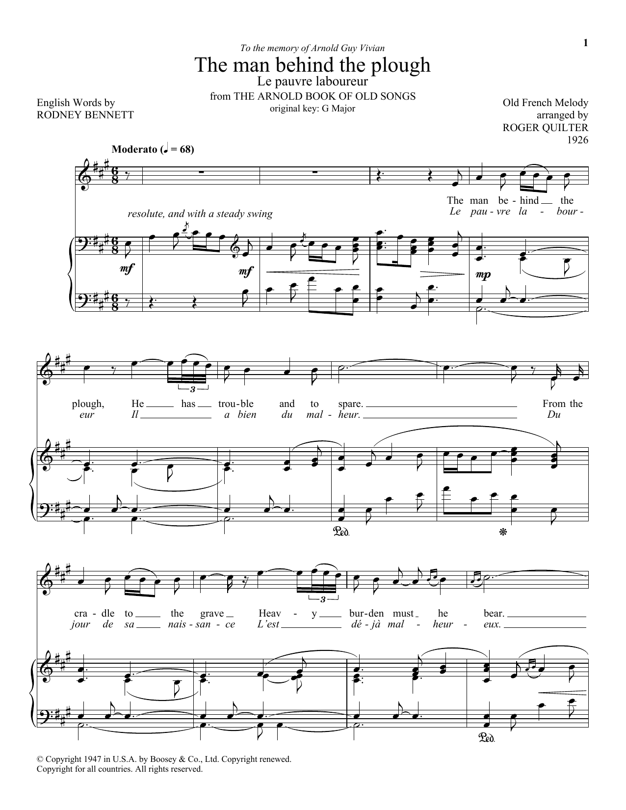 Download or print Roger Quilter The Man Behind The Plow (Le Pauvre Laboureur) sheet music, chords and digital score arranged for Piano & Vocal. This Classical score includes 6 page(s).