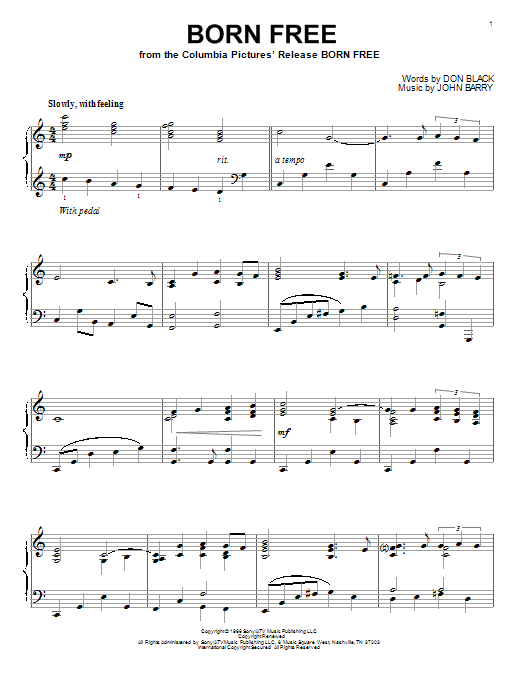 Download or print Roger Williams Born Free sheet music, chords and digital score arranged for Piano Solo. This Pop score includes 3 page(s).
