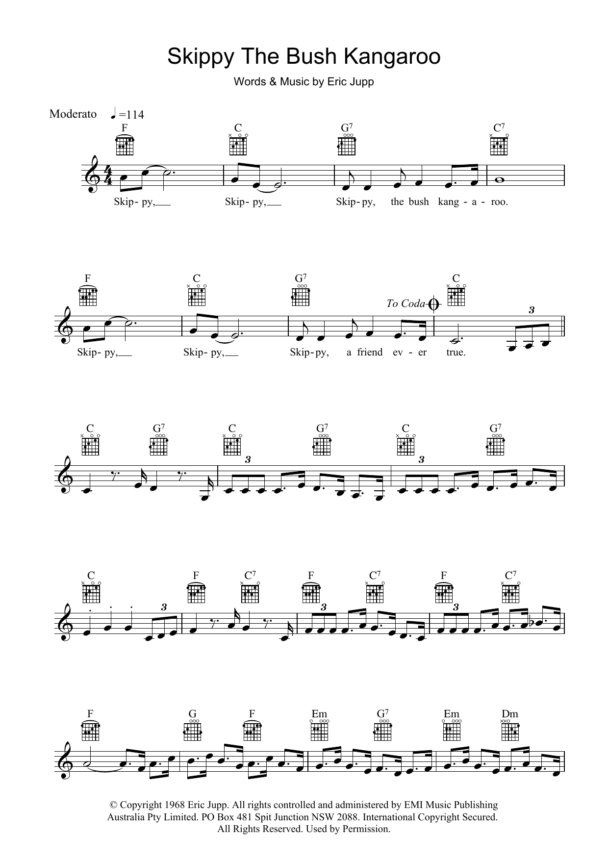 Download or print Rolf Harris Skippy The Bush Kangaroo sheet music, chords and digital score arranged for Lead Sheet / Fake Book. This Pop score includes 2 page(s).