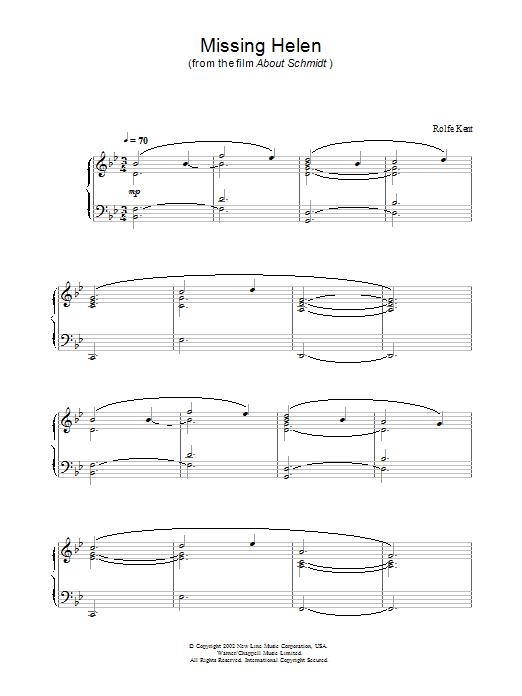 Download or print About Schmidt Missing Helen sheet music, chords and digital score arranged for Piano Solo. This Film/TV score includes 2 page(s).