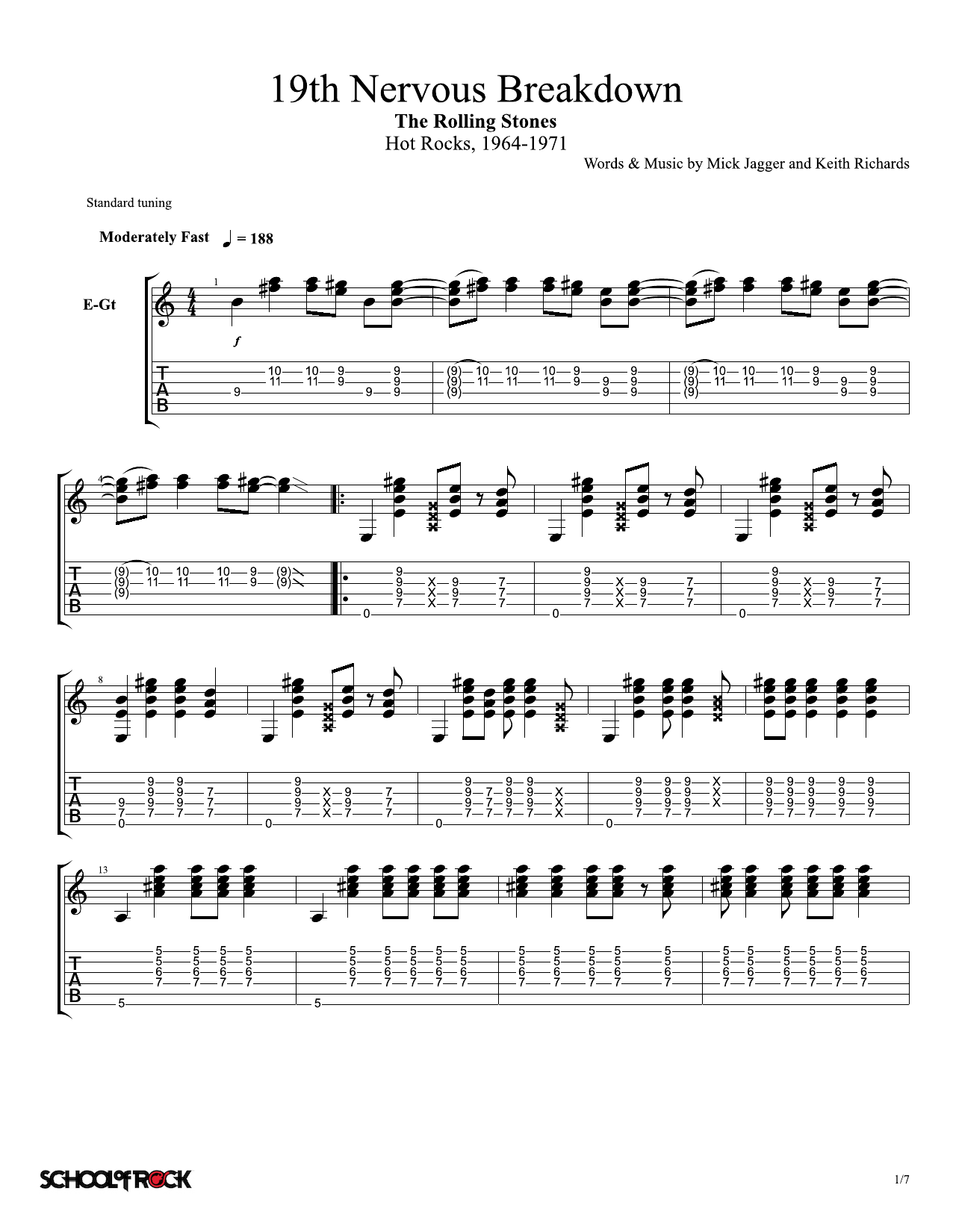 Download or print Rolling Stones 19th Nervous Breakdown sheet music, chords and digital score arranged for School of Rock – Lead Guitar Tab. This Pop score includes 7 page(s).