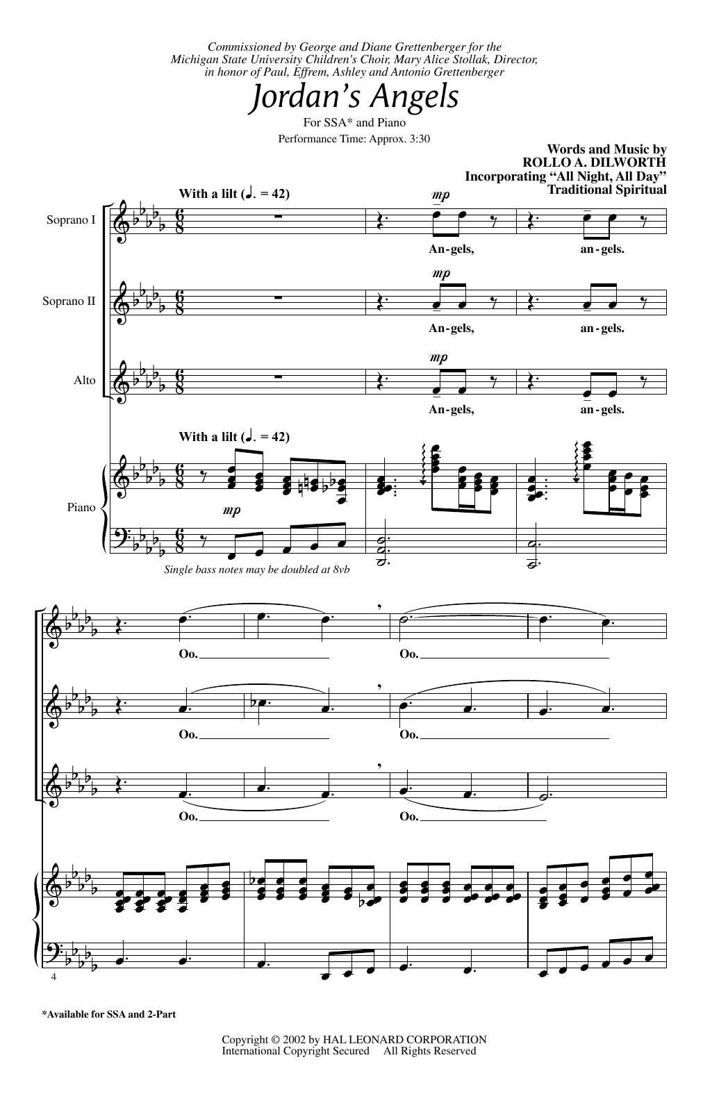 Download or print Rollo Dilworth Jordan's Angels sheet music, chords and digital score arranged for SATB Choir. This Concert score includes 11 page(s).
