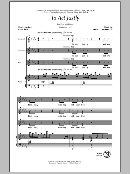 Download or print Rollo Dilworth To Act Justly sheet music, chords and digital score arranged for SSA Choir. This Concert score includes 15 page(s).