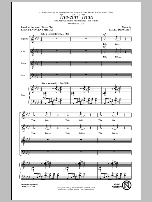 Download or print Rollo Dilworth Travelin' Train sheet music, chords and digital score arranged for SSAA Choir. This Concert score includes 15 page(s).