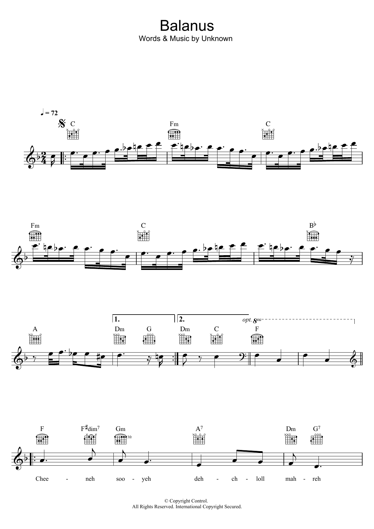 Download or print Romica Puceanu Balanus sheet music, chords and digital score arranged for Lead Sheet / Fake Book. This Folk score includes 2 page(s).