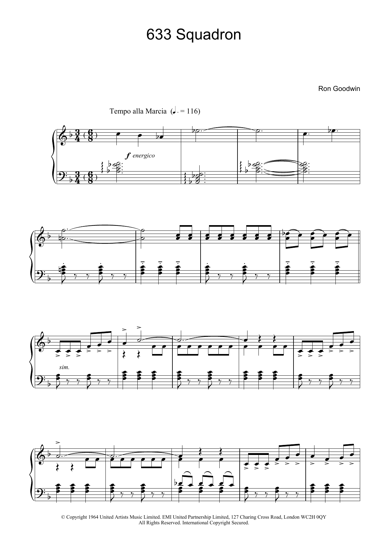 Download or print Ron Goodwin 633 Squadron sheet music, chords and digital score arranged for Piano Solo. This Film/TV score includes 4 page(s).
