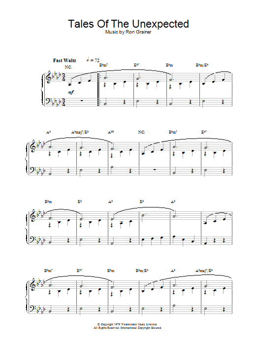 Download or print Ron Grainer Theme from Tales Of The Unexpected sheet music, chords and digital score arranged for Piano Solo. This Film/TV score includes 3 page(s).