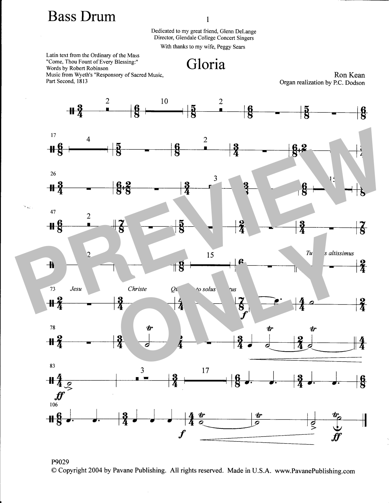 Download or print Ron Kean Gloria - Bass Drum sheet music, chords and digital score arranged for Choir Instrumental Pak. This Concert score includes 1 page(s).