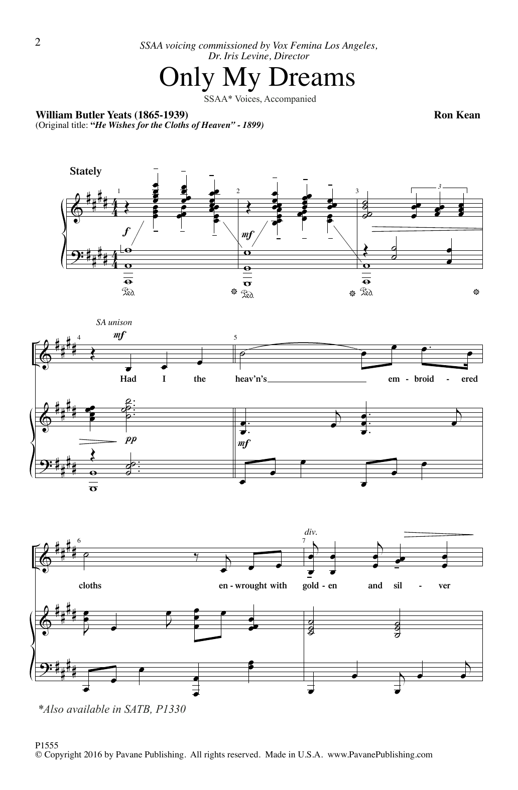 Download or print Ron Kean Only My Dreams sheet music, chords and digital score arranged for SSAA Choir. This Concert score includes 7 page(s).
