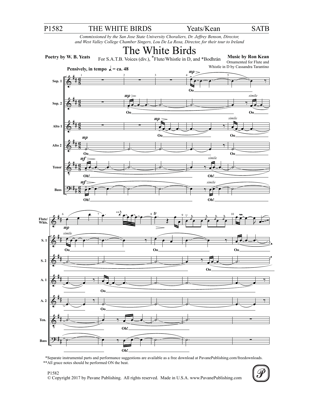 Download or print Ron Kean The White Birds sheet music, chords and digital score arranged for Choir. This Irish score includes 12 page(s).