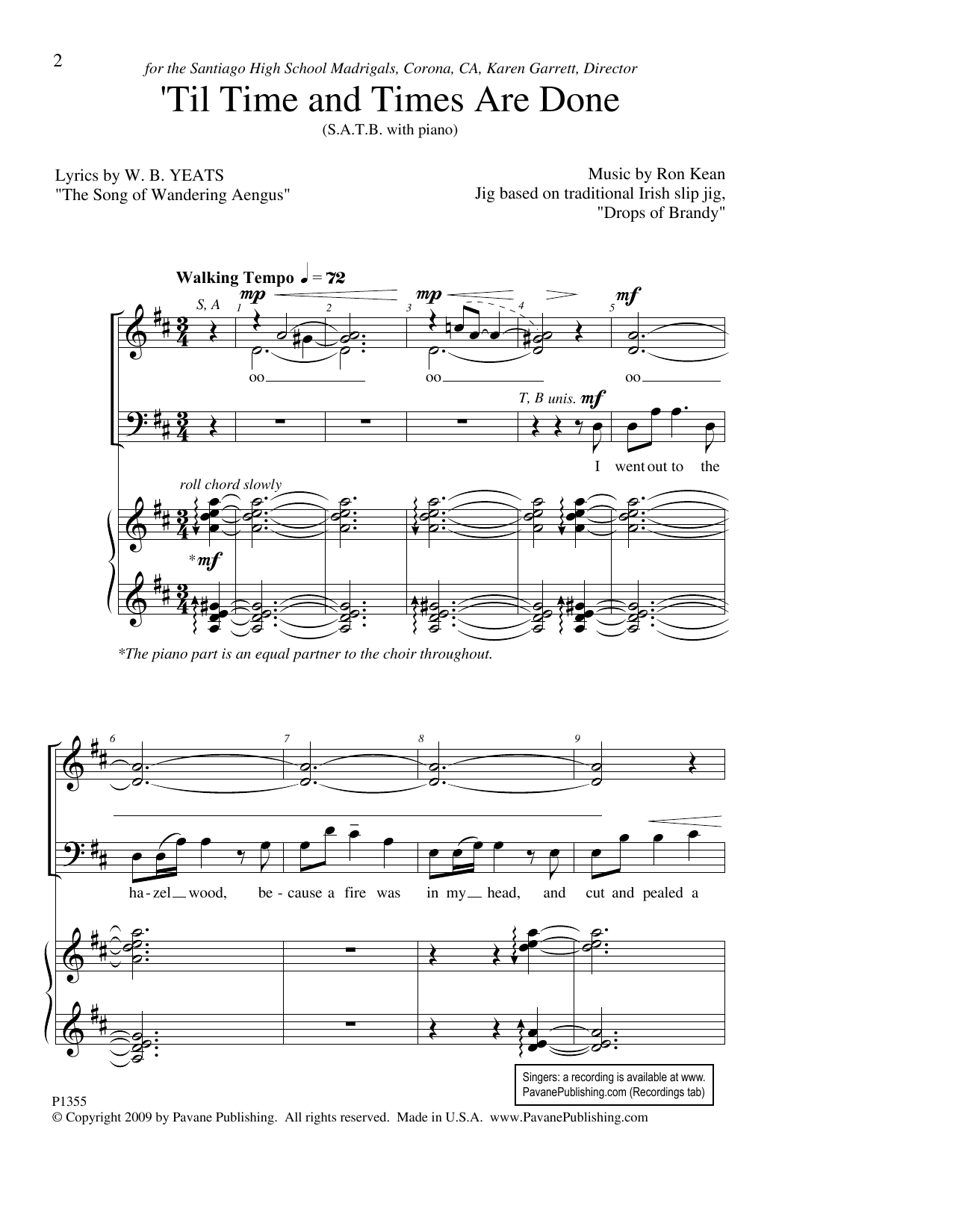 Download or print Ron Kean Til Time And Times Are Done sheet music, chords and digital score arranged for SATB Choir. This Irish score includes 11 page(s).