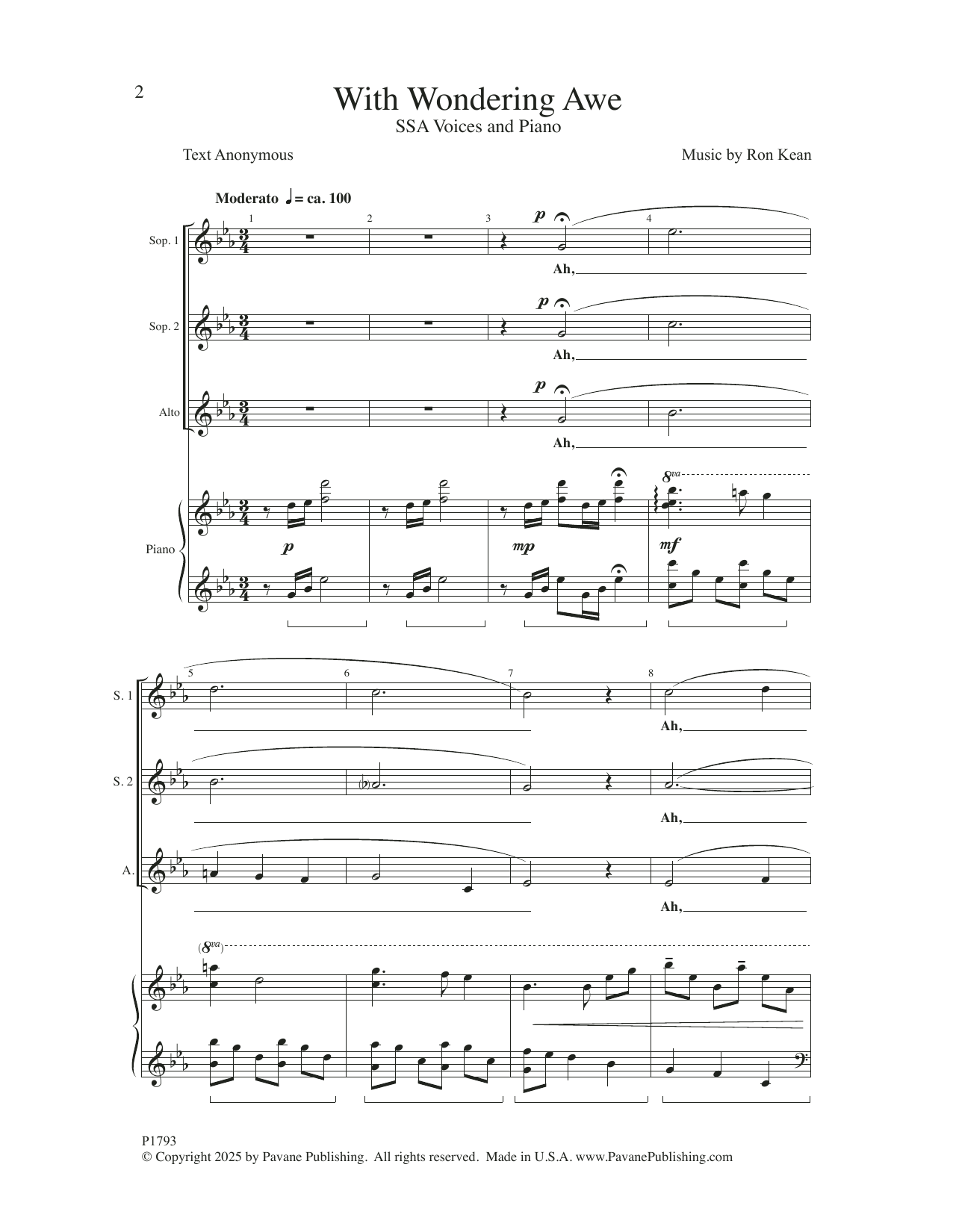 Download or print Ron Kean With Wondering Awe sheet music, chords and digital score arranged for SSA Choir. This Concert score includes 15 page(s).