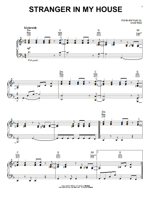Download or print Ronnie Milsap Stranger In My House sheet music, chords and digital score arranged for Piano, Vocal & Guitar Chords (Right-Hand Melody). This Country score includes 6 page(s).
