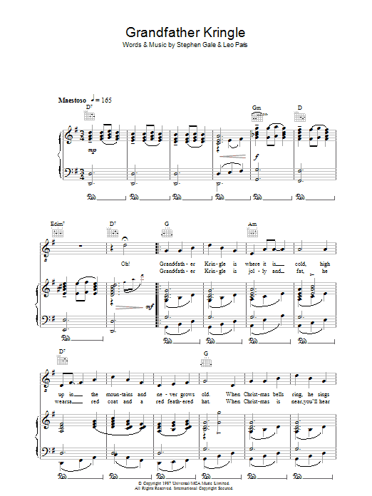 Download or print Ronnie Ronalde Grandfather Kringle sheet music, chords and digital score arranged for Piano, Vocal & Guitar Chords. This Christmas score includes 6 page(s).