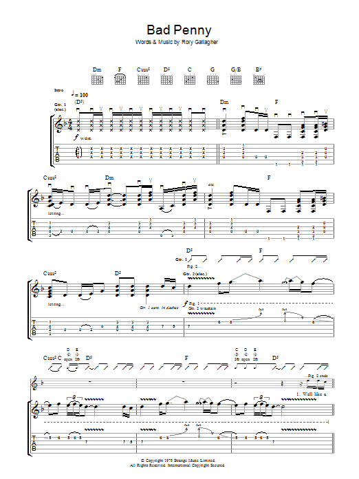 Download or print Rory Gallagher Bad Penny sheet music, chords and digital score arranged for Guitar Tab. This Blues score includes 8 page(s).