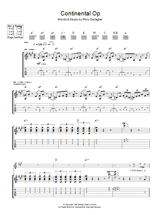 Download or print Rory Gallagher Continental Op sheet music, chords and digital score arranged for Guitar Tab. This Rock score includes 11 page(s).