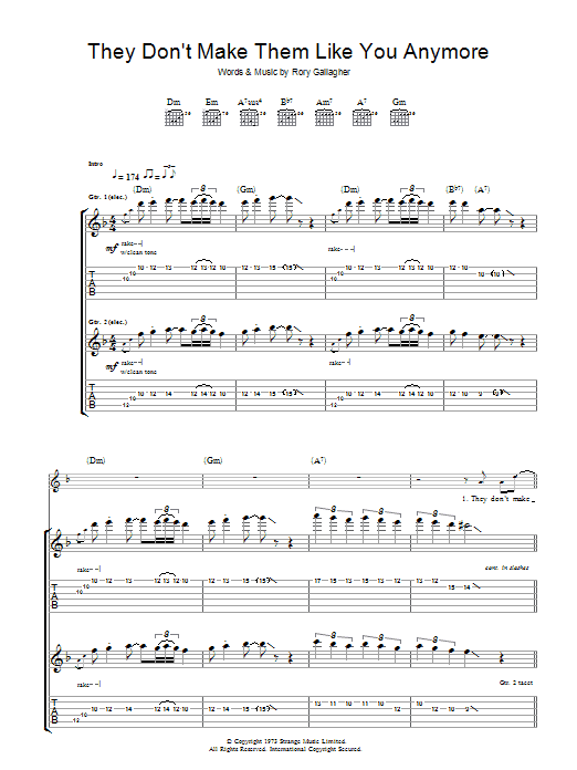 Download or print Rory Gallagher They Don't Make Them Like You Anymore sheet music, chords and digital score arranged for Guitar Tab. This Rock score includes 8 page(s).