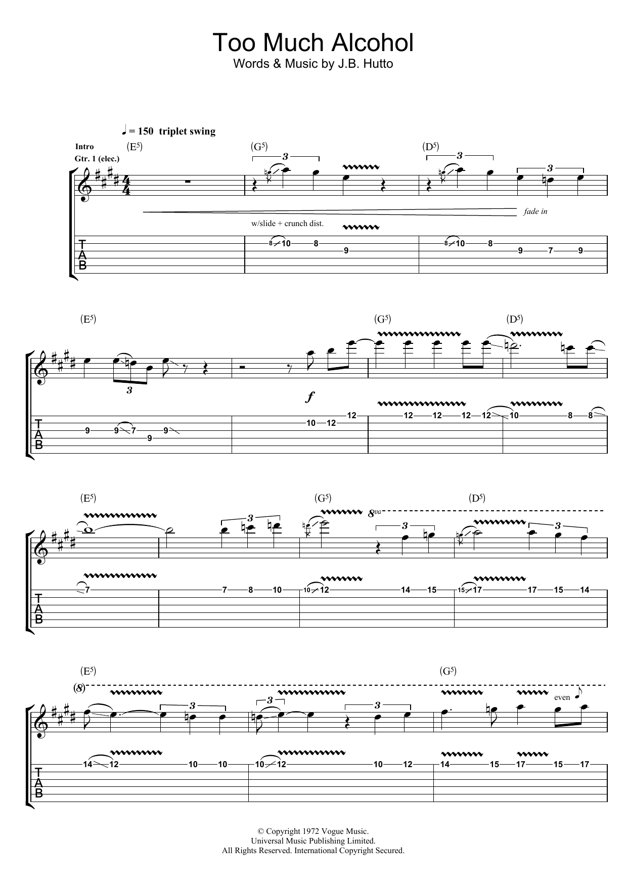 Download or print Rory Gallagher Too Much Alcohol sheet music, chords and digital score arranged for Guitar Tab. This Rock score includes 13 page(s).