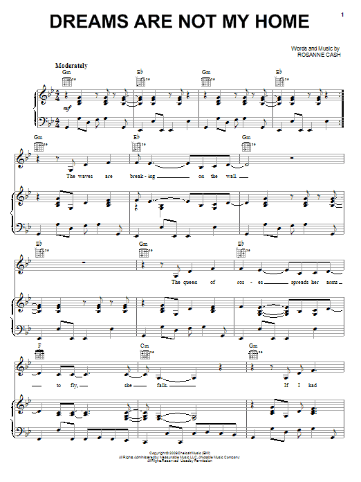 Download or print Rosanne Cash Dreams Are Not My Home sheet music, chords and digital score arranged for Piano, Vocal & Guitar Chords (Right-Hand Melody). This Pop score includes 6 page(s).