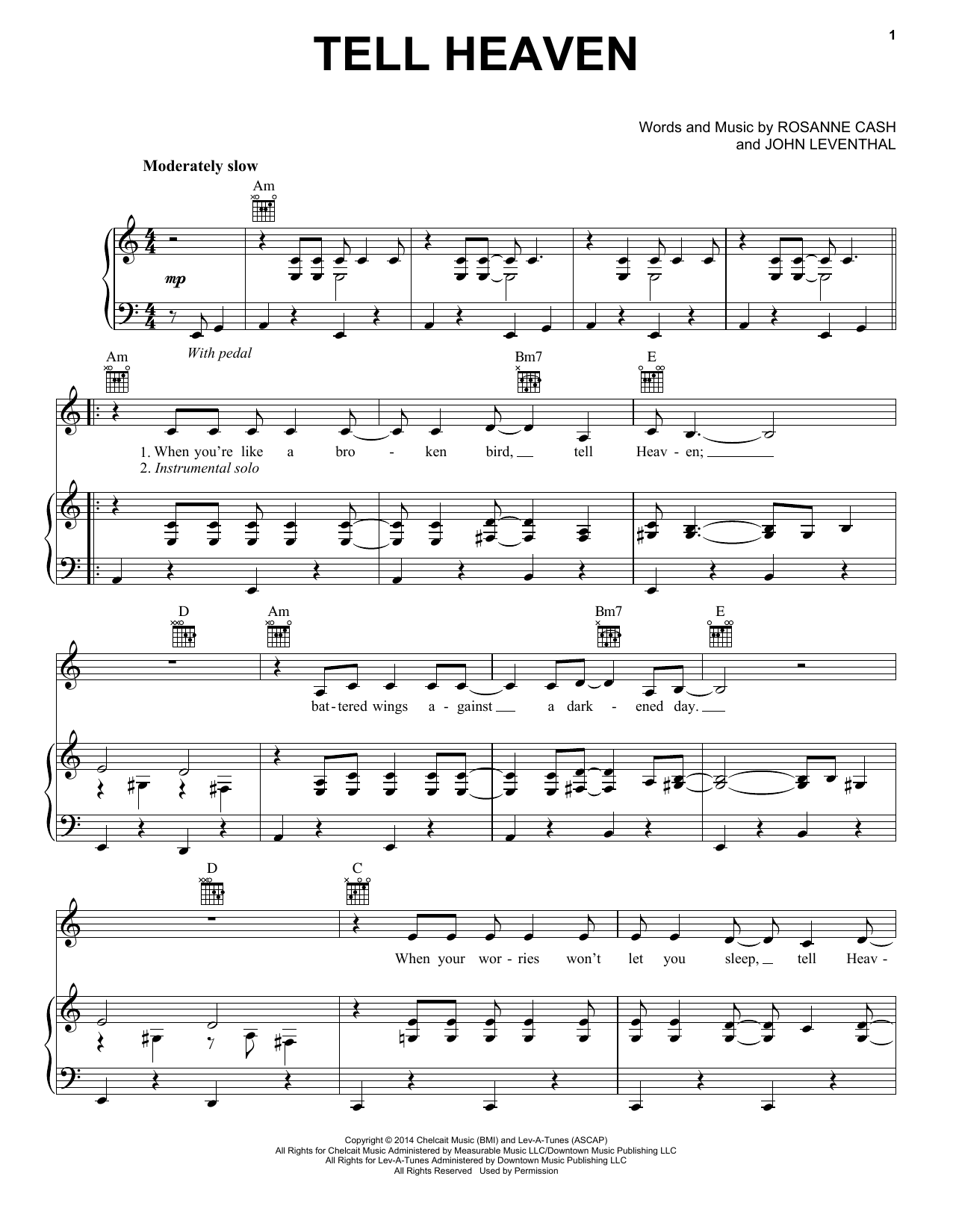 Download or print Rosanne Cash Tell Heaven sheet music, chords and digital score arranged for Piano, Vocal & Guitar Chords (Right-Hand Melody). This Country score includes 3 page(s).