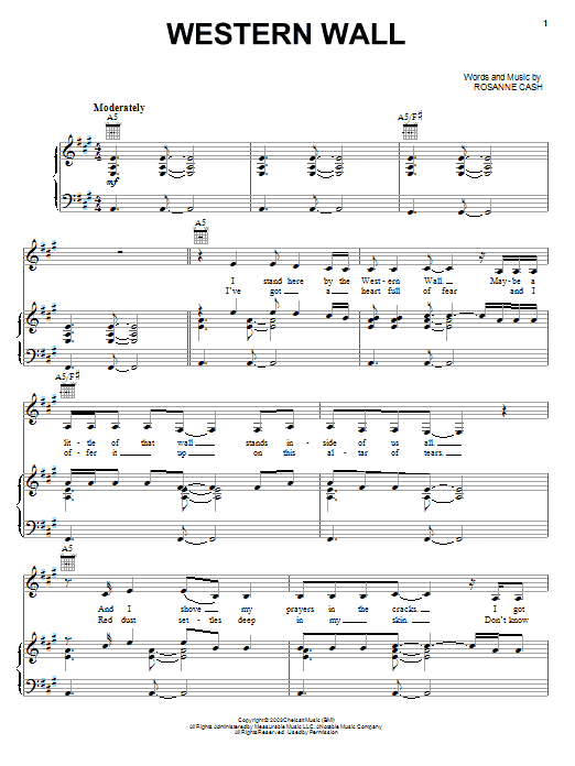 Download or print Rosanne Cash Western Wall sheet music, chords and digital score arranged for Piano, Vocal & Guitar Chords (Right-Hand Melody). This Country score includes 3 page(s).