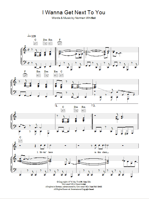 Download or print Rose Royce I Wanna Get Next To You sheet music, chords and digital score arranged for Piano, Vocal & Guitar Chords. This Pop score includes 6 page(s).