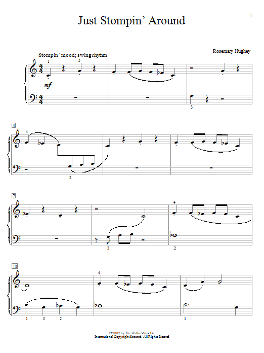 Download or print Rosemary Hughey Just Stompin' Around sheet music, chords and digital score arranged for Educational Piano. This Jazz score includes 2 page(s).