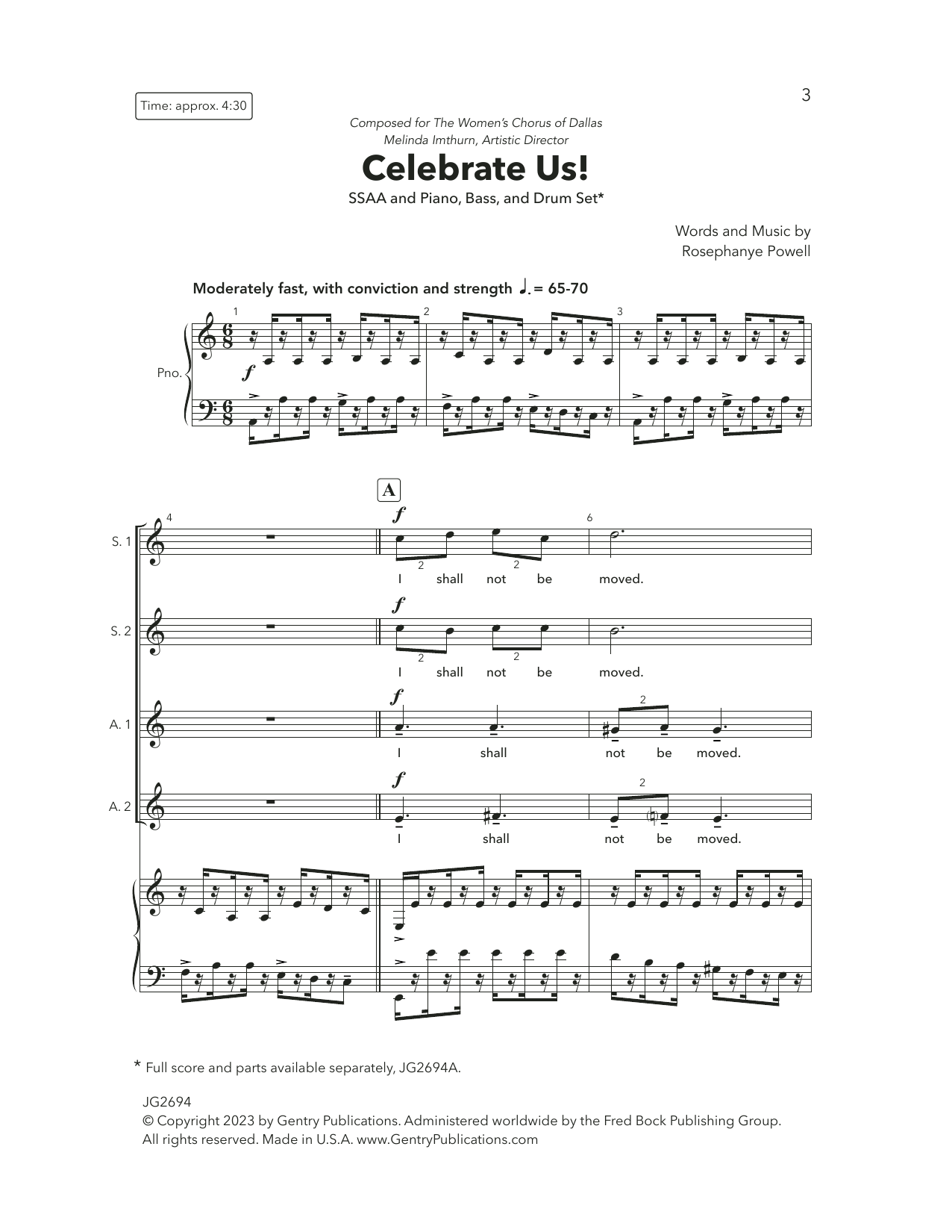 Download or print Rosephanye Powell Celebrate Us! sheet music, chords and digital score arranged for SSAA Choir. This Concert score includes 18 page(s).