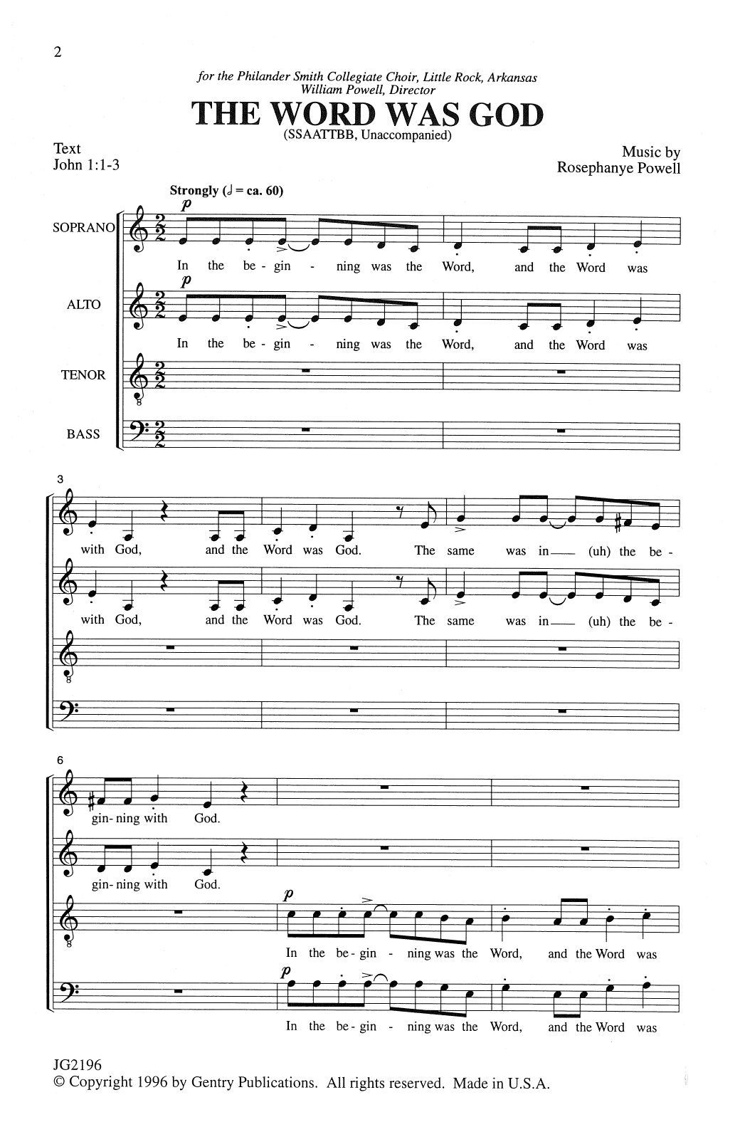 Download or print Rosephanye Powell The Word Was God sheet music, chords and digital score arranged for SATB Choir. This Sacred score includes 11 page(s).