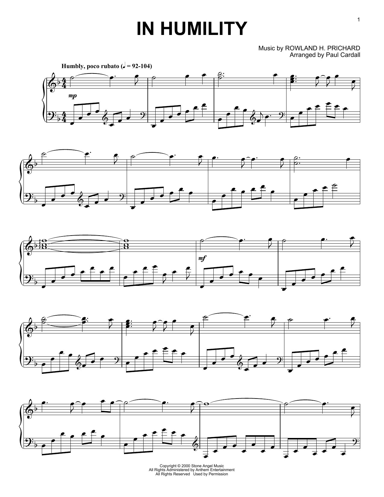 Download or print Rowland H. Prichard In Humility (arr. Paul Cardall) sheet music, chords and digital score arranged for Piano Solo. This Gospel score includes 5 page(s).