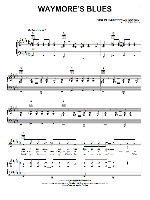 Download or print Roy Orbison Waymore's Blues sheet music, chords and digital score arranged for Piano, Vocal & Guitar Chords (Right-Hand Melody). This Pop score includes 6 page(s).