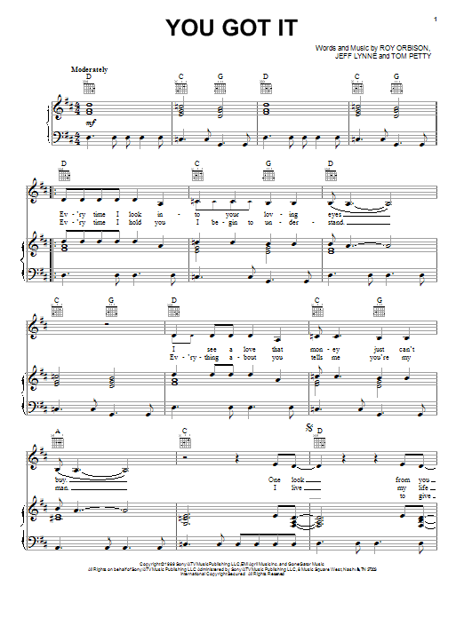 Download or print Roy Orbison You Got It sheet music, chords and digital score arranged for Easy Lead Sheet / Fake Book. This Pop score includes 2 page(s).